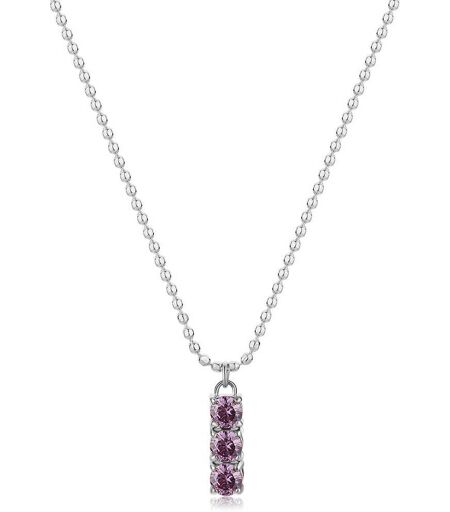 Collana Di Sagapo Da Donna Della Collezione Dazzly. Collana In Acciaio 316l Con Pendente Centrale Con Tre Zirconi Di Colore Viola. La Referenza È Sdz08, Materiale Gioiello: Acciaio, Argento 925, Bigiotteria, Oro, Pelle; Pietra: Acquamarina, Cristalli , ...