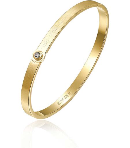 Bracciale Da Donna Di Brosway Della Collezione Withyou. Gioiello Realizzato In Acciaio 316l Con Finitura Di Colore Oro Spazzolatoe Cristallo Black Diamond. Diamentro: 62 Mm. La Referenza È Bwy16a, Materiale Gioiello: Acciaio, Argento 925, Bigiotteria, ...