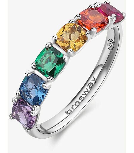 Anello Da Donna Di Brosway Della Collezione Fancy In Argento 925 E Cushion Cubic Zirconia Multicolore. Misura Anello: 20. La Referenza È: Fjr07f, Materiale Gioiello: Acciaio, Argento 925, Bigiotteria, Oro, Pelle; Pietra: Acquamarina, Cristalli , ...