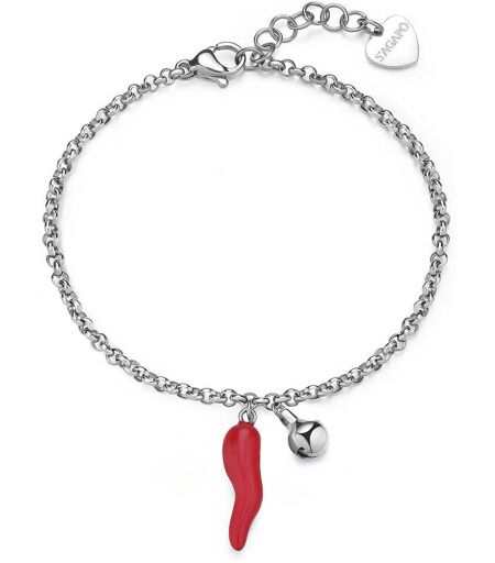Bracciale Da Donna Di S'Agapò Della Collezione Feelings. Bracciale In Acciaio 316l Con Campanellino E Cornetto Con Smalto Di Colore Rosso. La Referenza È: Sfe15, Materiale Gioiello: Acciaio, Argento 925, Bigiotteria, Oro, Pelle; Tipo Di Bracciale: ...