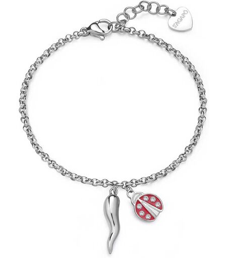 Bracciale Da Donna Di S'Agapò Della Collezione Feelings. Bracciale In Acciaio 316l Con Coccinella Con Smalto Di Colore Rosso E Cornetto. La Referenza È: Sfe17, Materiale Gioiello: Acciaio, Argento 925, Bigiotteria, Oro, Pelle; Tipo Di Bracciale: ...
