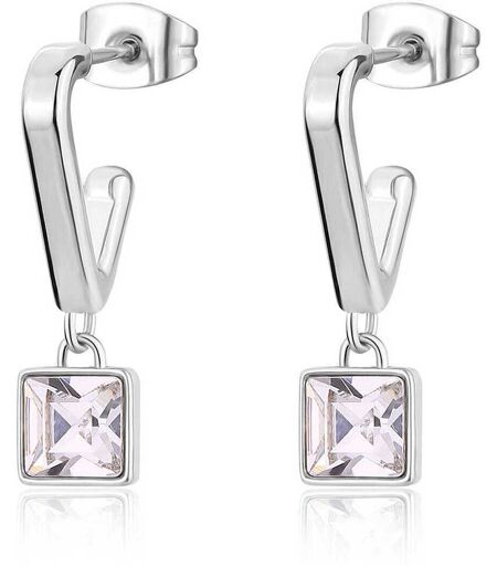 Orecchini Pendenti Da Donna Di S'Agapò Della Collezione Luce. Orecchini In Acciaio Di Colore Argento A Forma Triangolare Con Pendente Di Cristallo A Forma Di Quadrata. La Referenza È Sce39, Materiale Gioiello: Acciaio, Argento 925, Bigiotteria, Oro, ...