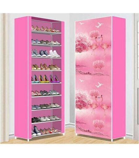 BES - Scarpiera Salvaspazio Tessuto 10 Ripiani Scaffale Portascarpe tnt Rosa Flamingo