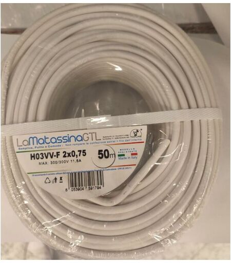 Cavo multipolare H03VV-F Go-At Topline 2x0,75 50 metri- H03VV-F/2X075/B50 Utilizzo in locali domestici e uffici.Per applicazioni e apparecchi per servizio leggero (per esempio complessi stereo, lampade da tavolo e normali, macchine da ufficio). Adatti per una temperatura massima di funzionamento del conduttore di 70°C se utilizzati all’interno di apparecchiature o simili dove può essere garantita l’assenza di contatto con la pelle.Non consentito l’utilizzo all’esterno, in edifici industriali ed agricoli, per utensili portatili non domestici. -DESCRIZIONE: Cavo flessibile isolato in PVC sotto guaina leggera in PVC tondo-FORMA: Tonda-POSA: Mobile-CONDUTTORE: Conduttore a corda flessibile di rame ricotto stagnato o non stagnato, di classe 5 secondo Norma CEI EN 60228 vigente-ISOLANTE: Mescola termoplastica a base di polivinilcloruro di tipo TI2. Isolante elettrico di cavi per collegamenti mobili. / PVC-GUAINA: PVC-TENSIONE D'ESERCIZIO: 300/300 V-NORMATIVE: CEI EN 50525-2-11, RoHS ...