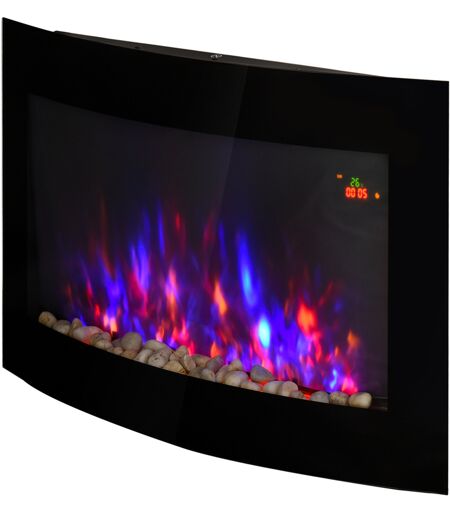 Homcom Caminetto Elettrico da Parete con Effetto Fiamma Colorato con Telecomando, in Acciaio Inox e Vetro 65x11.4x52cm Nero