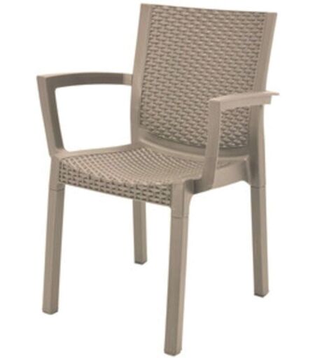 Poltrona con braccioli in polipropilene impilabile effetto rattan . Adatta ad uso esterno. Dotata di n.ro 04 Tacchetti per garantire un ottima affidabilit. Dimensioni cm. 55x55x83h ...