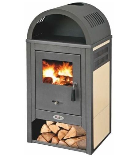 Stufa a legna Vienna colore beige 8-10 kw aria primaria regolabile in acciaio e ghisa con caricamento frontale ...