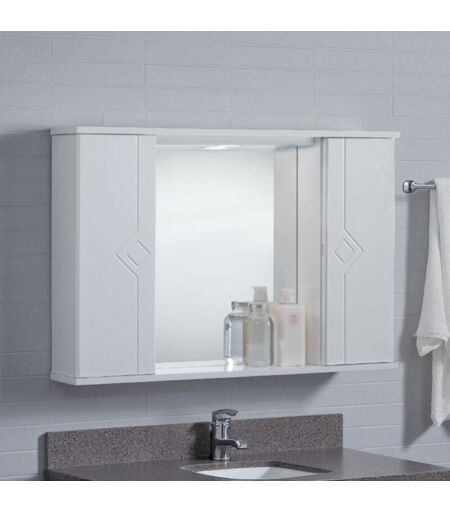 BLUELIFE - Specchiera da bagno plutone 90 bianco lucido a 2 ante con luce led