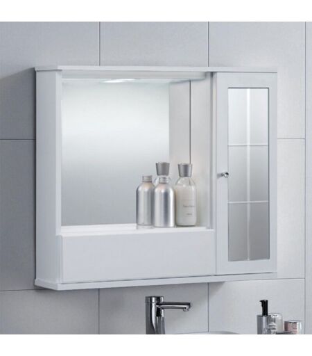BLUELIFE - Specchiera mobile contenitore da bagno giove 70 bianco lucido a 1 anta con specchio e luce led