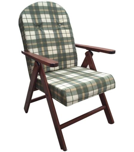 Poltrona sdraio Amalfi in legno,schienale reclinabile in 4 posizioni,rivestita in tessuto.Struttura resistente e seduta comoda,che garantisce un buon sostegno senza far sprofondare il corpo. Poltrona realizzata interamente in faggio, imbottitura sagomati di poliuretano espanso. Adatta per qualsiasi ambiente della casa. CARATTERISTICHE Colore: Verde Colore della struttura: Noce Materiale: Legno di faggio,policotone Tipologia: Poltrona reclinabile Dimensioni: Larghezza: 60 cm / Profondita' 67 cm / Altezza: 109 cm Peso: 12 kg Imbottito: Si Sfoderabile: No Reclinabile: 4 posizioni Altezza seduta compreso cuscino: 50 cm Profondita' seduta: 50 cm Altezza schienale: 67 cm Spessore cuscino seduta: 11 cm Spessore cuscino schienale: 14 cm Peso supportato: 110 kg max ...