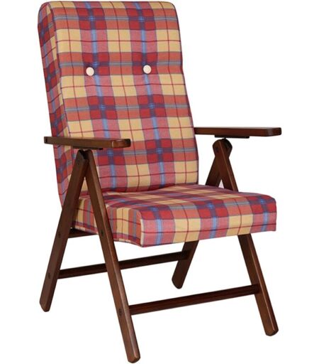 Poltrona sdraio Molisana in legno,schienale reclinabile in 4 posizioni,rivestita in tessuto.Struttura resistente e seduta comoda,che garantisce un buon sostegno senza far sprofondare il corpo. . Poltrona realizzata interamente in faggio, imbottitura sagomati di poliuretano espanso. Adatta per qualsiasi ambiente della casa. CARATTERISTICHE Colore: Bordeaux Colore della struttura: Noce Materiale: Legno di faggio, policotone Tipologia: Poltrona reclinabile Dimensioni: Larghezza: 60 cm / Profondita' 67 cm / Altezza: 109 cm Peso: 12 kg Imbottito: Si Sfoderabile: No Reclinabile: 4 posizioni Altezza seduta compreso cuscino: 50 cm Profondita' seduta: 50 cm Altezza schienale: 67 cm Spessore cuscino seduta: 14 cm Spessore cuscino schienale: 15 cm Peso supportato: 110 kg max ...