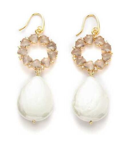 Orecchini Da Donna Di Le Carose Della Collezione Autumn In New York. Orecchini In Bronzo Con Bagno Di Galvanica Color Oro E Pietre Idrotermali Grey E Gocce Perle. Lunghezza: 5 Cm. La Referenza È Manhorc6, Materiale Gioiello: Acciaio, Argento 925, ...