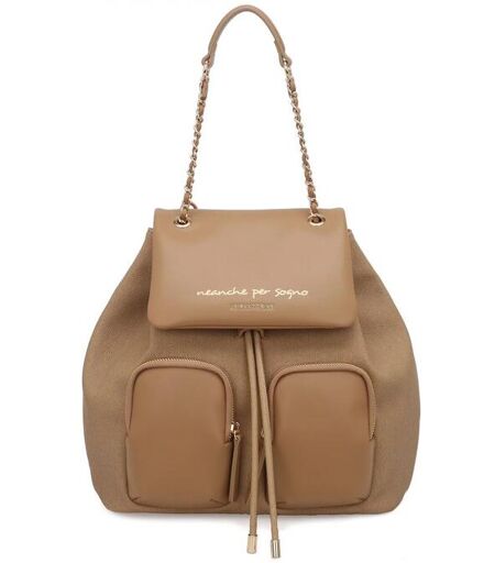 Zainetto mini Alice colore naturale.CARATTERISTICHE PRODOTTOClaim "NEANCHE PER SOGNO "Zaino misura piccolaPattina in PU con claim stampatoLogo in TPU color oroDue tasche con zip sul fronteCorpo borsa in PU effetto canvasChiusura coulisse e bottone a clipFodera internaTaschine interneSpallacci in catena e PU con doppia funzioneDIMENSIONIAltezza: 20 cmLarghezza: 23 cmProfondita: 12 cm ...