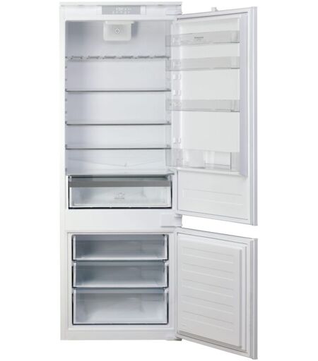 Hotpoint Ariston Frigorifero combinato ad incasso BCB 4020 E. Capacità netta totale: 400 L. Cerniera porta: Destra, Tipo di display: LED. Classe climatica: SN-ST, Emissione acustica: 35 dB. Capacità netta frigorifero: 299 L, Luce interna, Numero di ripiani frigorifero: 4, Numero di cassetti per verdura: 1. Capacità netta congelatore: 101 L, Capacità di congelamento: 8,5 kg/24h. Compartimento zona fresca. Classe efficienza energetica: E, Consumo energetico annuo: 248 kWh. Colore del prodotto: Bianco ...
