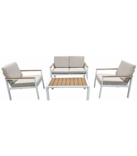 GLOUPIE Salotto da Giardino Santa FE 4 Posti, in Alluminio Verniciato Bianco, Divano,Poltrone Con Ambi Cuscini e Tavolino