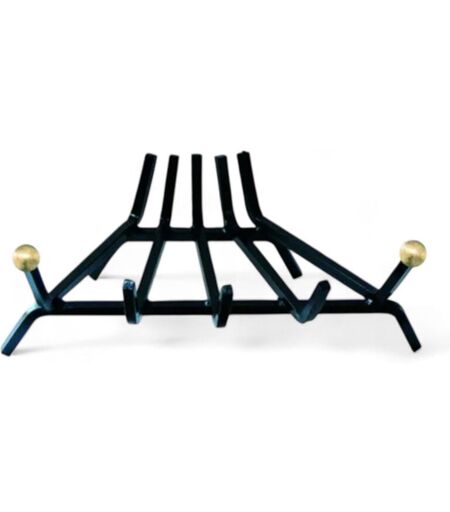 NO BRAND Brucialegna triangolare per camino ferro battuto nero con pomoli ottone robusto e stabile dimensione 40 cm