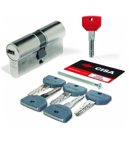 CISA Cilindro europeo infilare sicurezza avanzata 8 perni chiavi grigie e rosse anti effrazione ottone misura 30-30 - mm.89 (30-60)
