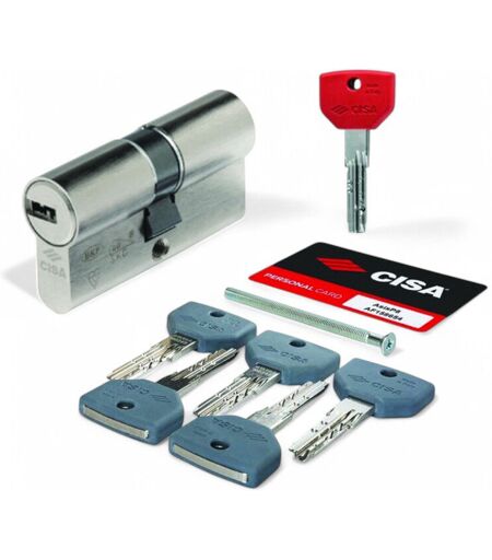 CISA Cilindro europeo infilare sicurezza avanzata 8 perni chiavi grigie e rosse anti effrazione ottone misura 30-30 - mm.99 (30-70)