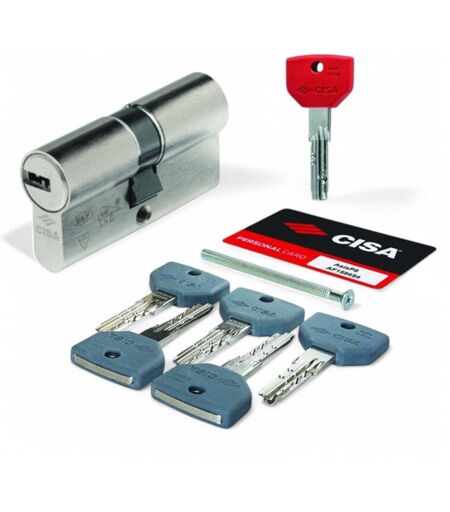 CISA Cilindro europeo infilare sicurezza avanzata 8 perni chiavi grigie e rosse anti effrazione ottone misura 30-30 - mm.79 (35-45)