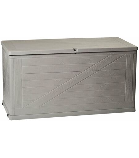 Struttura in resina inalterabile resistente al gelo e alle intemperie ed ai raggi UV maniglie per un comodo trasporto lucchettabile facile montaggio ad incastro Decorazione simil-legno Dimensioni L120xP57xH63 cm. - Lt. 420 Colore tortora ...