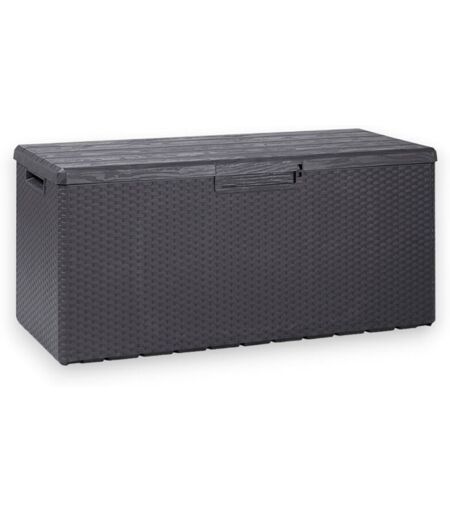 TOOMAX - Baule contenitore 340 lt da esterno in resina antracite effetto rattan e coperchio effetto legno Portofino
