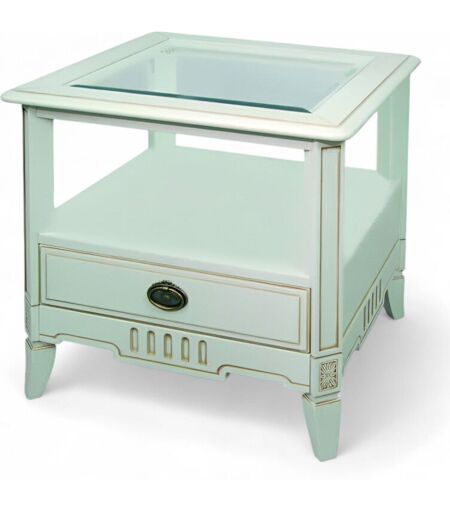 NO BRAND Tavolino basso quadrato in legno stile provenzale finitura bianco anticato per soggiorno o salotto dimensioni compatte