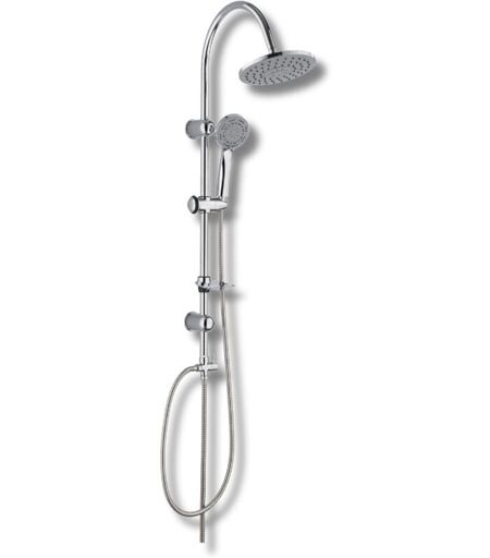 È un'ottima scelta per chi cerca un sistema doccia completo e funzionale. Set Doccia completo di: Barra in acciaio Ø22 x 100 mm; Attacco 3/4"; Deviatore in ottone cromato; Portasapone Ø22 in ABS; Doccetta in ABS cromata 1 funzione Ø100 mm; Soffione in ABS cromato 1 funzione Ø200 mm; Flessibile in acciaio Inox lungh. 150 cm; Cursore Ø22 mm in ABS cromato; Coppia di supporti colonna Ø22 mm ABS cromato. Dimensione : H110x33.5 SCHEDA TECNICA ...