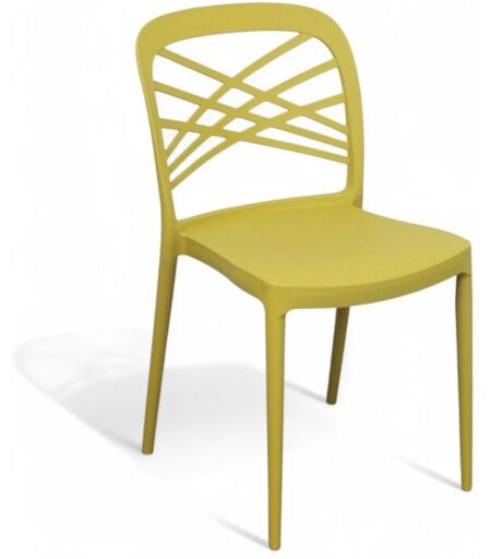 NO BRAND - Sedia in resina senza braccioli con schienale design intrecciato impilabile per giardino Harmoni - Giallo