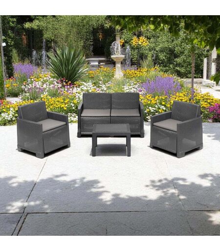Progarden Salotto da esterno 4 posti in polipropilene 2 poltrone 1 divano e 1 tavolino con cuscini - Antracite