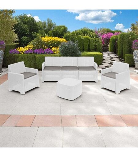 Progarden Salotto da esterno 5 posti in polipropilene 2 poltrone 1 divano e 1 tavolino con cuscini - Bianco