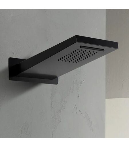 INBAGNO Soffione doccia a sbalzo 22x50 cm nero opaco in acciaio inox con cascata