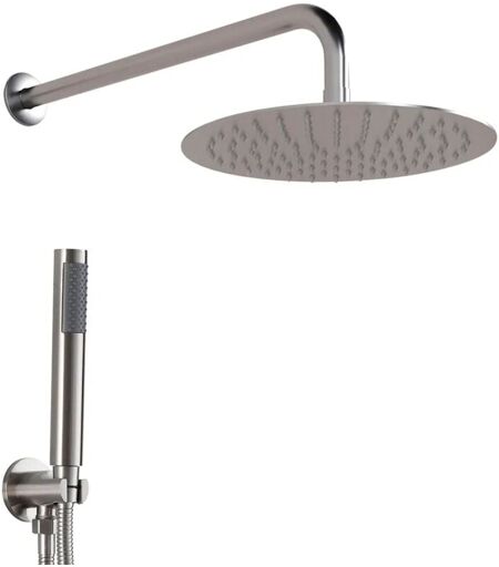 INBAGNO Kit doccia satinato con braccio 35 soffione 30 e set doccia completo Gemini