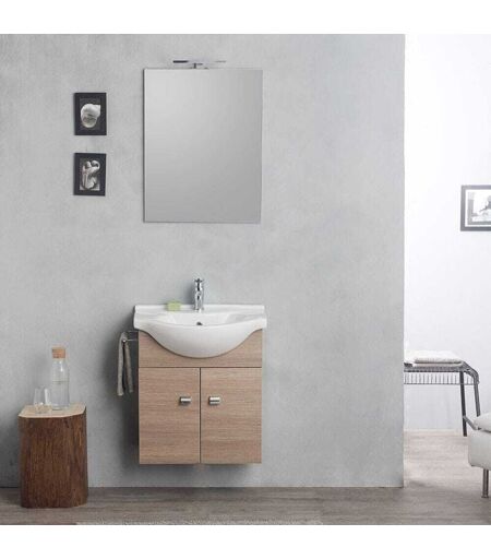 KIAMAMI VALENTINA - Composizione Sospesa In Quercia Naturale Completa Di Lavabo, Specchio e Luce
