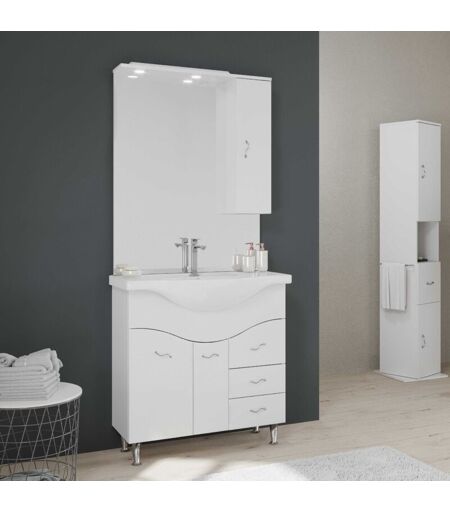 KIAMAMI VALENTINA - Mobile Bagno 85Cm a Terra Con Lavabo Specchio e Pensile Bianco Easy