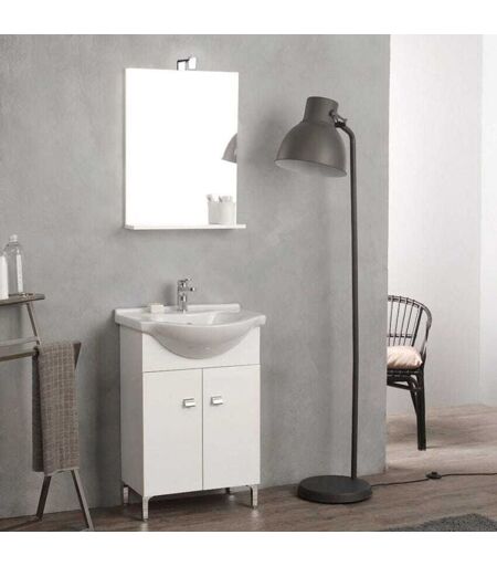 KIAMAMI VALENTINA - Mobile Bagno a Terra 56 Cm Con Lavabo e Specchio Bianco Simply