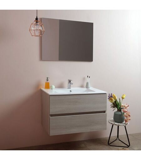 KIAMAMI VALENTINA - Mobile Bagno 80 Cm Con Cassetti Olmo Leone Lavabo In Ceramica Berlin