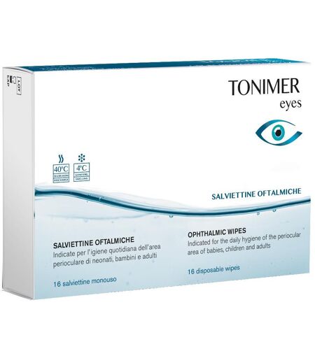 Tonimer Eyes Salviettine Oftalmiche - Descrizione Salviette monouso indicate per l'igiene quotidiana dell'area perioculare di bambini e neonati, anche in caso di stati infiammatori del bordo palpebrale (congiuntivite, blefaro - congiuntivite, ozaiolo, calazio). Imbibite con una soluzione contenente… ...