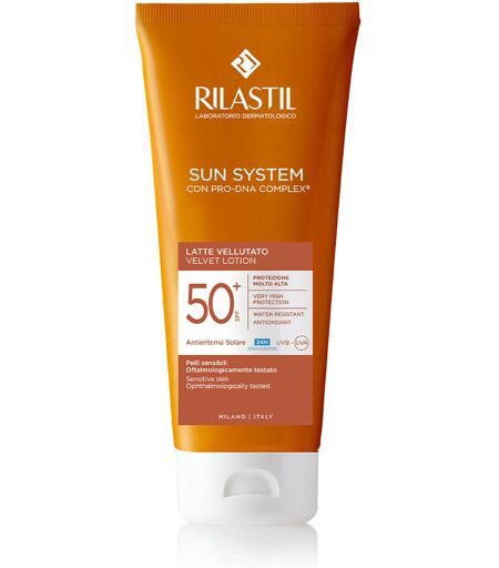 Rilastil Sun System SPF 50+ Latte Solare Vellutato 200 mlLatte Vellutato a protezione molto alta per pelli sensibiliDescrizione di Rilastil Sun System SPF 50+ Latte Solare VellutatoLatte vellutato emolliente, di facile applicazione, con protezione ad ampio spettro d ...