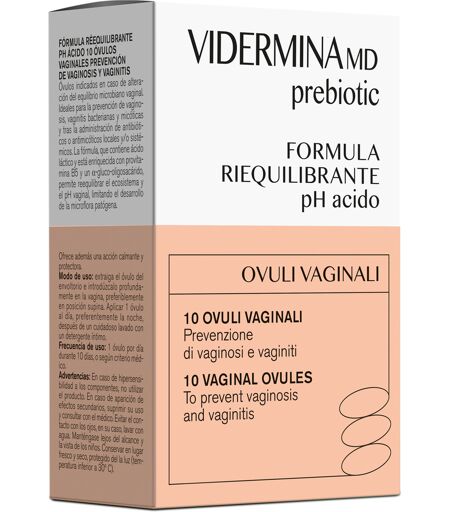 Vidermina Prebiotic Ovuli - Ovuli prebiotici indicati in caso di alterazione dell'equilibrio microbico vaginale. Ideali per la prevenzione di vaginosi, vaginiti batteriche e micotiche e a seguito della somministrazione di antibiotici o antimicotici locali e/o sistemici. La formulazione contenente u… ...