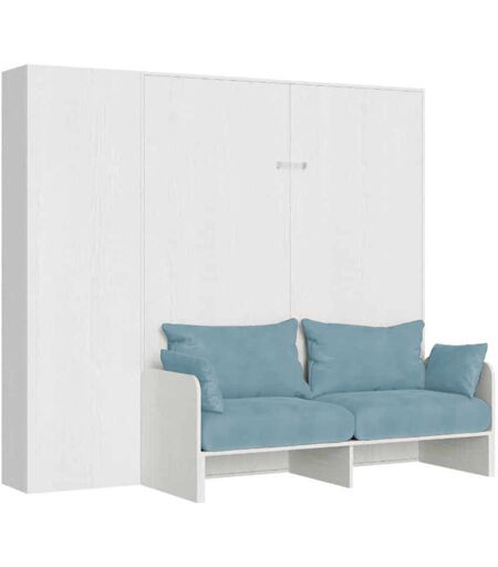 ITAMOBY Letto matrimoniale a scomparsa 160 Kentaro con divano e colonna bianco frassino, azzurro
