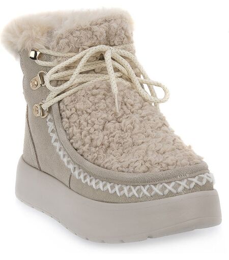 tronchetto da donna con plateau allacciato sul gambale. polacchino con bordo a mocassino e interno in pelliccia sintetica. colore: platino. ...