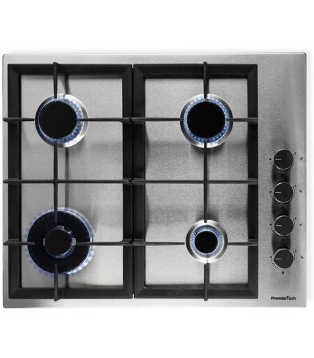 PremierTech® PremierTech PC604S Piano cottura a gas da 60cm a 4 fuochi con Wok in acciaio Inox griglie in ghisa