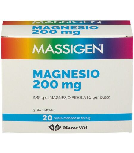 massigen Magnesio Pidolato Integratore Sali Minerali Limone 20 Bustine