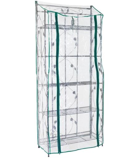 STI Serra scaffale fioriera da balcone terrazza giardino, per piante e fiori, telo pvc, pieghevole apertura a cerniera, decori in metallo, facile da