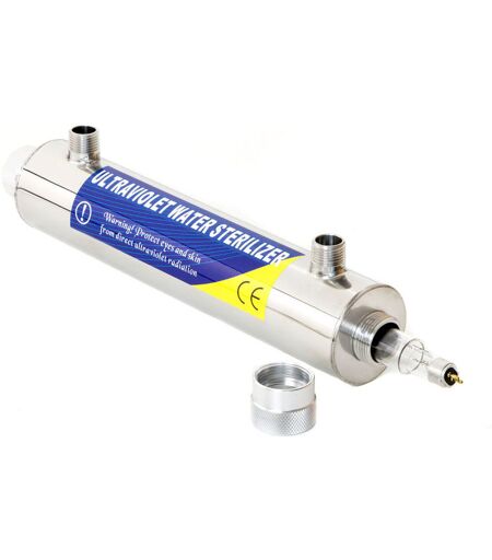Gli sterilizzatori con lampada a raggi UV STI Show Time Italy sono ideali per utenze domestiche, permettono un efficace abbattimento di batteri, muffe e virus. Sono disponibili due modelli: da 16w che garantisce la sua efficacia fino a un flusso d'acqua di 7 lt/min (per fare un esempio un rubinetto di cucina totalmente aperto eroga un massimo di 3-4 lt/min) e da 55w efficace fino a 45 lt/min ideale da posizionare a monte dell'intero impianto. Le lampade UV utilizzate nei nostri sterilizzatori vanno sostituite ogni 12 mesi, è inoltre importante pulire il cilindro di quarzo che contiene la lampada UV, in quanto su questo può depositarsi del calcare o altro materiale che crea una patina diminuendo l'efficacia della lampada. E' consigliabile installare a monte dello sterilizzatore filtri in polipropilene ( filtri e portafiltro sono disponibili nel nostro negozio) per abbattere le particelle in sospensione e diminuire i depositi sulla lampada e in generale nell'intero impianto idrico. ...