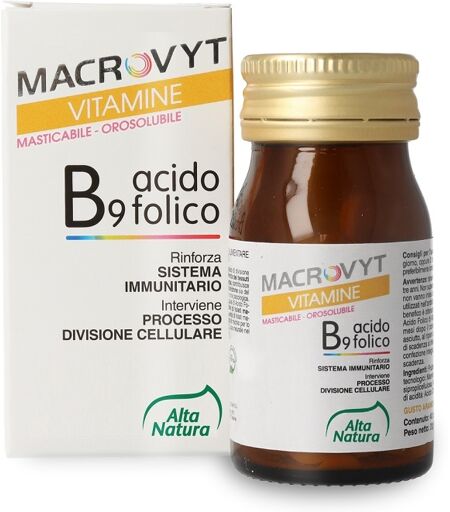 MACROVYT VITAMINE - Descrizione Integratore alimentare. Interviene nel processo di divisione cellulare e nella crescita dei tessuti materni in gravidanza contribuisce inoltre alla normale funzione sia del sistema immunitario che psicologica. L'assunzione integrativa di acido folico aumenta la quot… ...