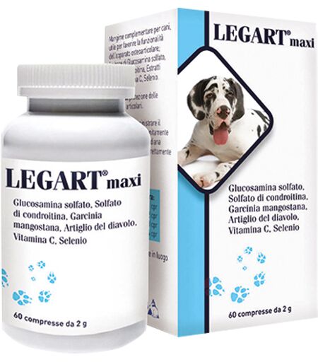 LEGART maxi - Supplemento nutrizionale per cani a base di principi attivi titolati e standardizzati utile nella protezione e recupero della funzionalità articolare. Aroma: fegato. Ingredienti Integrazione vitaminico mineralekg Vitamina C40 g Selenio27 5 mg Integrazione nutrienti - markerkg Glucos… ...