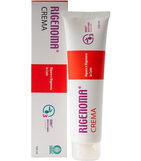 RIGENOMA CREMA - Descrizione Rigenoma Crema in fase di riepitelizzazione e mantenimento del trofismo cutaneo evita la formazione di cheloide. Ozoile in associazione con acido ialuronico Aloe vera Borracina della Madonna per ottimizzare l'idratazione e integrare la capacità di rigenerazione tissu… ...