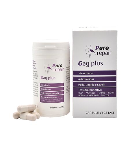 PUROREPAIR GAG PLUS - Descrizione Integratore alimentare a base di biocell e pipenig utile per la funzionalità delle vie urinarie la funzionalità articolare il trofismo del tessuto connettivo il benessere di unghie e capelli il drenaggio dei liquidi corporei la regolarizzazione del transito in… ...