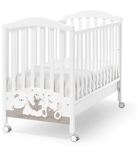 La struttura del lettino Erbesi Mirtillo e in legno massello di faggio. Il lettino e dotato di un ampio cassetto, 4 ruote piroettanti con gomma antitraccia di cui due con freno. Entrambe le sponde sono mobili con il sistema di movimento secur-baby azionabile in due movimenti susseguenti. Kit alzata rete incluso. Dimensioni: L 131,5 cm P 71 cm H 105 cm ...